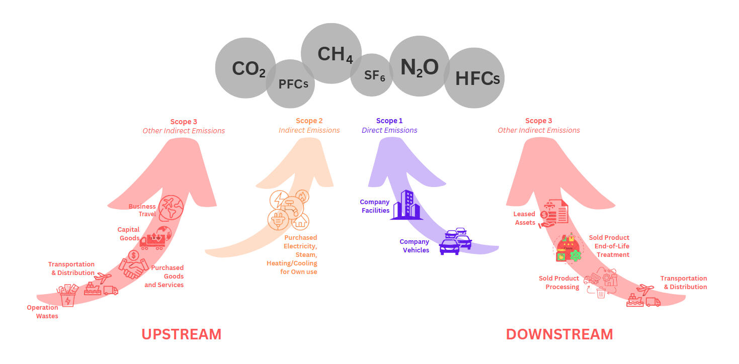 Scope 1 (Direct Emissions): From sources owned by the company (e.g., fuel in company vehicles).